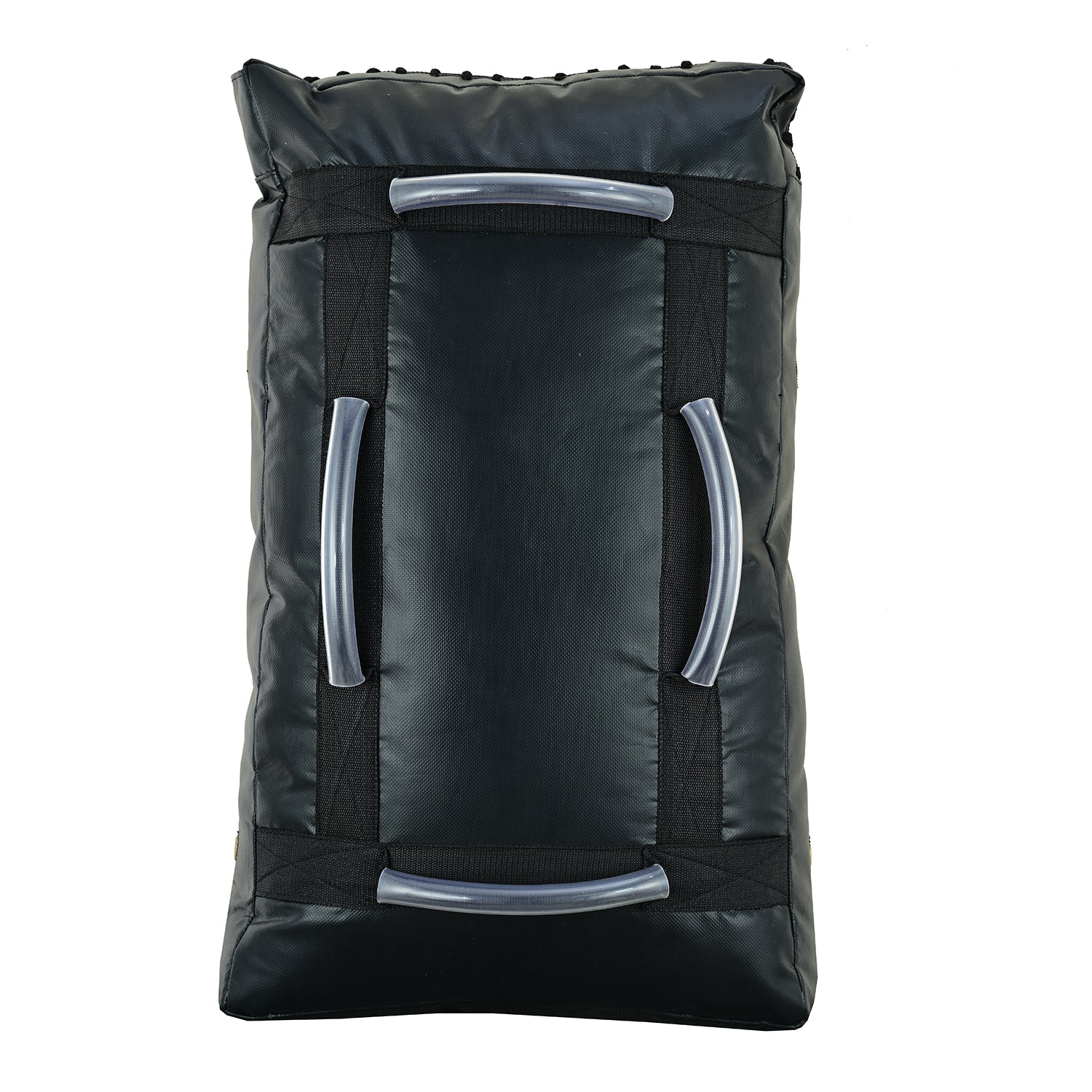 New strike pad brought to the market as per Clubs' requests. Large Size strike pad, with special loose filling of cotton felt, which itself is tough and, when completely filled, will absorb the toughest strike and kick. The top of the bag is secured with a zip, which itself is concealed under PU. At the back, the pad has four handles, covered with Plastic for comfort on the hands (these can easily be cut off if not required). Double stitching on the handles. Also has the added benefit of two top loops for wall hanging. This Playwell pad has everything you need in a striking pad.