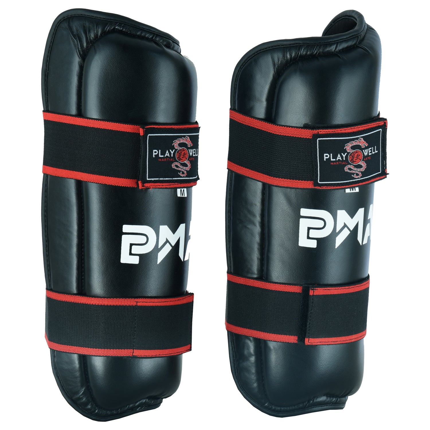Shin guards are an essential item for kickboxing, the tibia is a sensitive part of the body with no natural protection. Due to the shape and the inner EVA material of the shin guard, the impact energy is spread across the surface and not taken directly on the tibia. The outer material is Rexion Maya, it is suitable for sensitive skin and will minimise the chance of skin irritation.